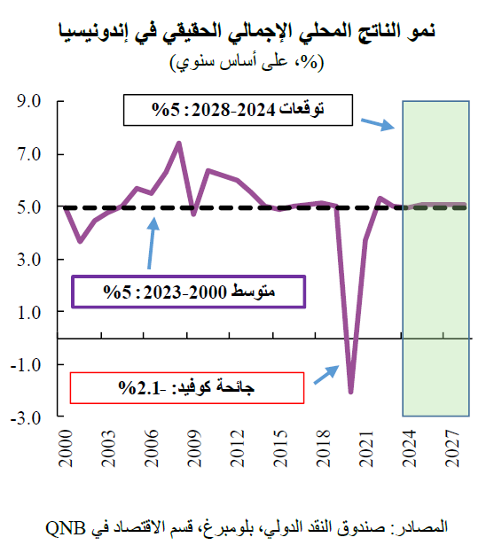 من المقرر أن يعمل الرئيس المنتخب حديثاً، برابوو سوبيانتو، الذي تولى منصبه في أكتوبر الماضي لولاية مدتها خمس سنوات، على ضمان استمرارية السياسات الاقتصادية وتبني أجندة مؤيدة للأعمال. ومن وجهة نظرنا، فإن إندونيسيا في وضع جيد للحفاظ على نموها القوي والمستقر الذي يبلغ حوالي 5% خلال السنوات المقبلة. وهناك ثلاثة عوامل رئيسية تدعم هذه التوقعات الإيجابية، على الرغم من الرياح المعاكسة، مثل تزايد الحمائية الأمريكية وتقلب أسعار السلع الأساسية.
